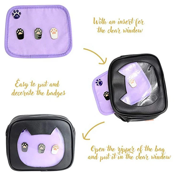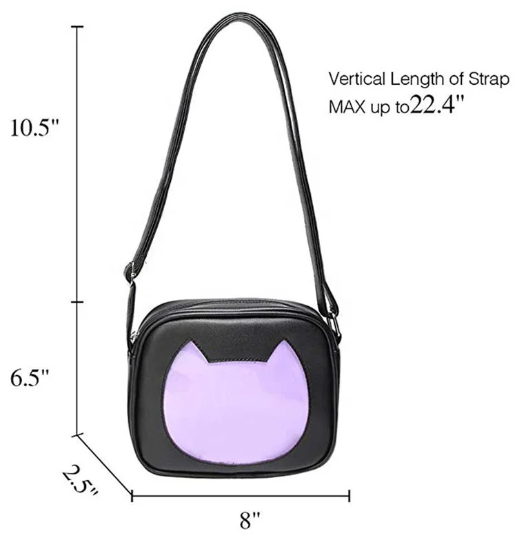 Custom Fashion Casual Cute Cat Shape PU Leather Crossbody Ita Bag with Insert and Clear Window